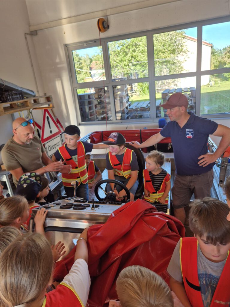 Natürlich durften die Kinder viele Fragen stellen – und keine blieb unbeantwortet. Wie funktioniert ein Spreizer? Wofür braucht man so viele Schläuche? Und was macht das Boot eigentlich bei der Feuerwehr? Geduldig erklärten uns der erste Kommandant Ludwig Fehlner die Technik und gab spannende Einblicke in den Feuerwehralltag. Wir bedanken uns ganz herzlich bei der Ludwig Fehlner und der Feuerwehr Hilpoltstein für diesen spannenden Nachmittag.