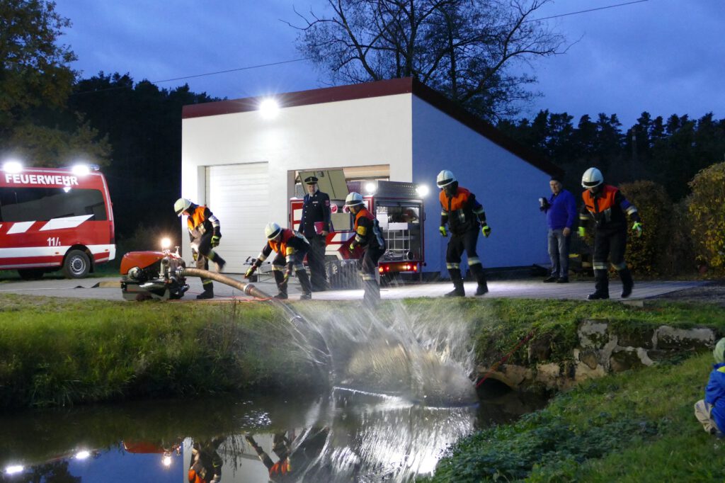 Am 22.10.25 fand um 18:00 Uhr die Leistungsprüfung „Die Gruppe im Löscheinsatz“ an unserem Übungsort an der Knabenmühle statt. An sechs vorangegangenen Übungsterminen haben unsere Kameraden alle erforderlichen Handgriffe geübt.